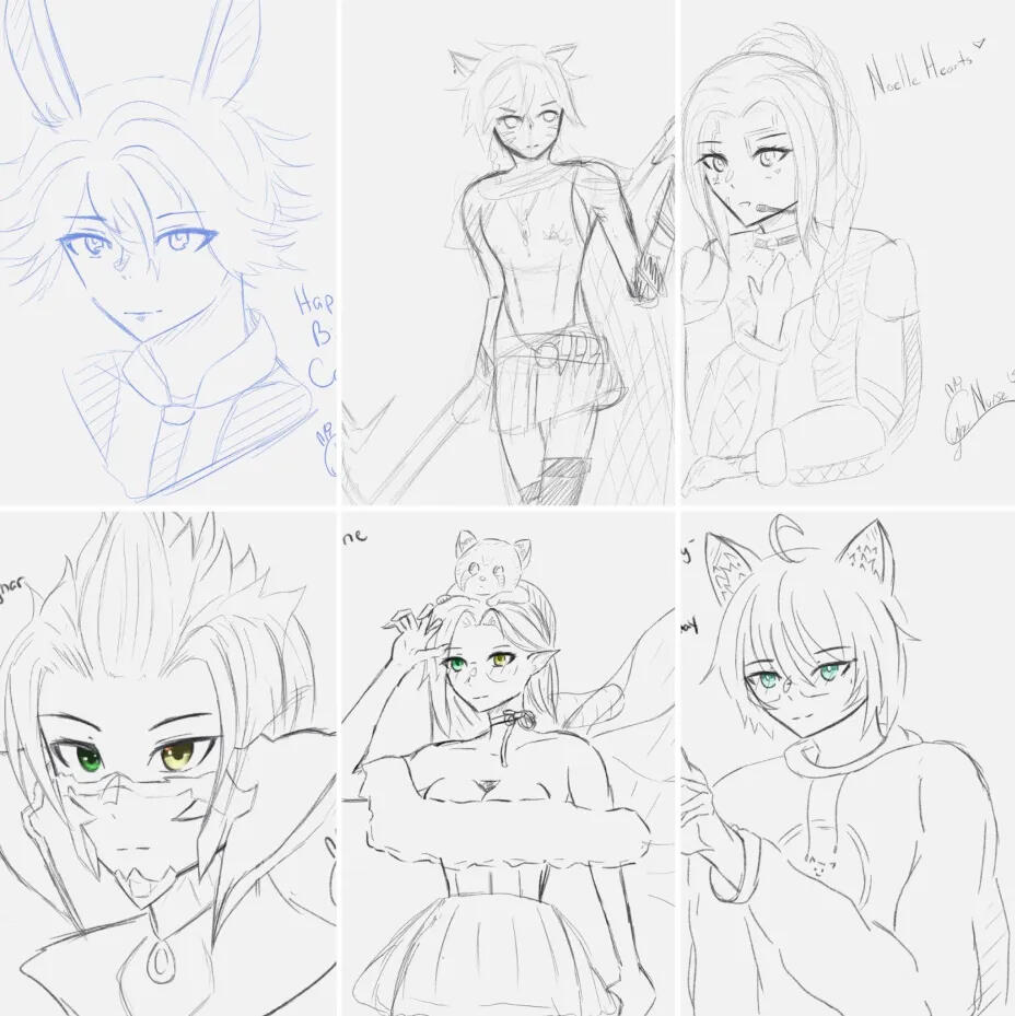 For something extra adorable and quick! These sketches focus on your character's cute side with an oversized head and expressive features. They are perfect for avatars and profile pictures.Price per character: 1Mil Gil